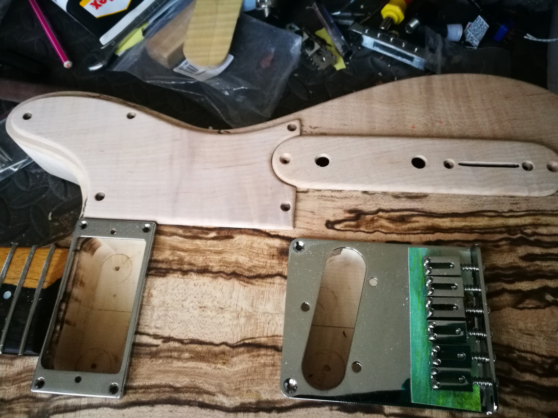 Conception et mise en teinte du pickguard et de la plaque de controle.